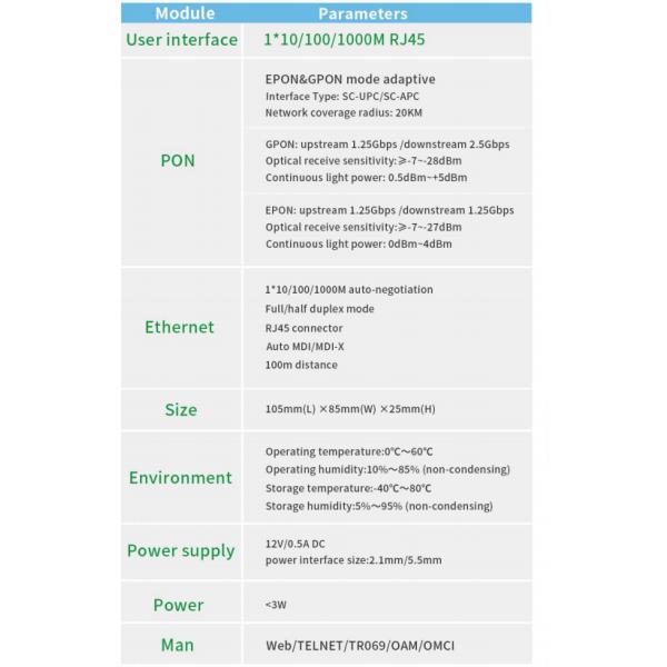 - In compliant with IEEE802.3ah &ITU-T G984 adaptive interface